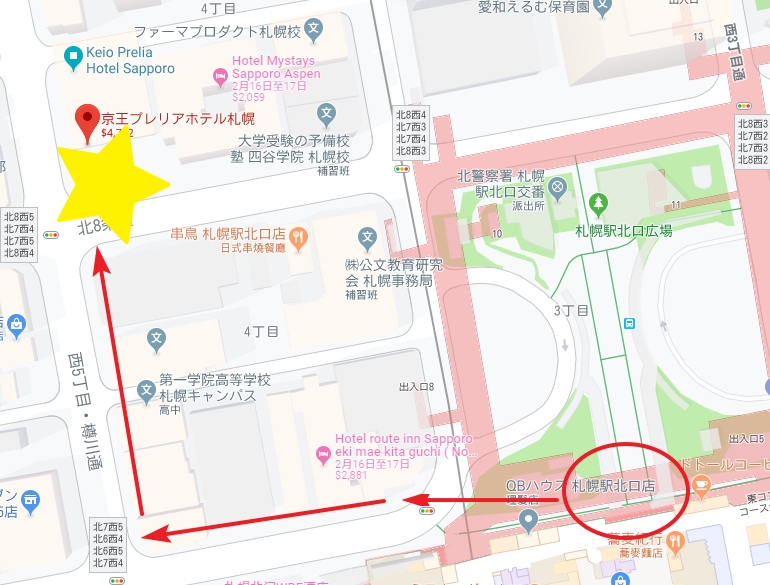 飯店位於 *札幌車站 北出口(往北海道大學) 步行約3-5分鐘,非常近!